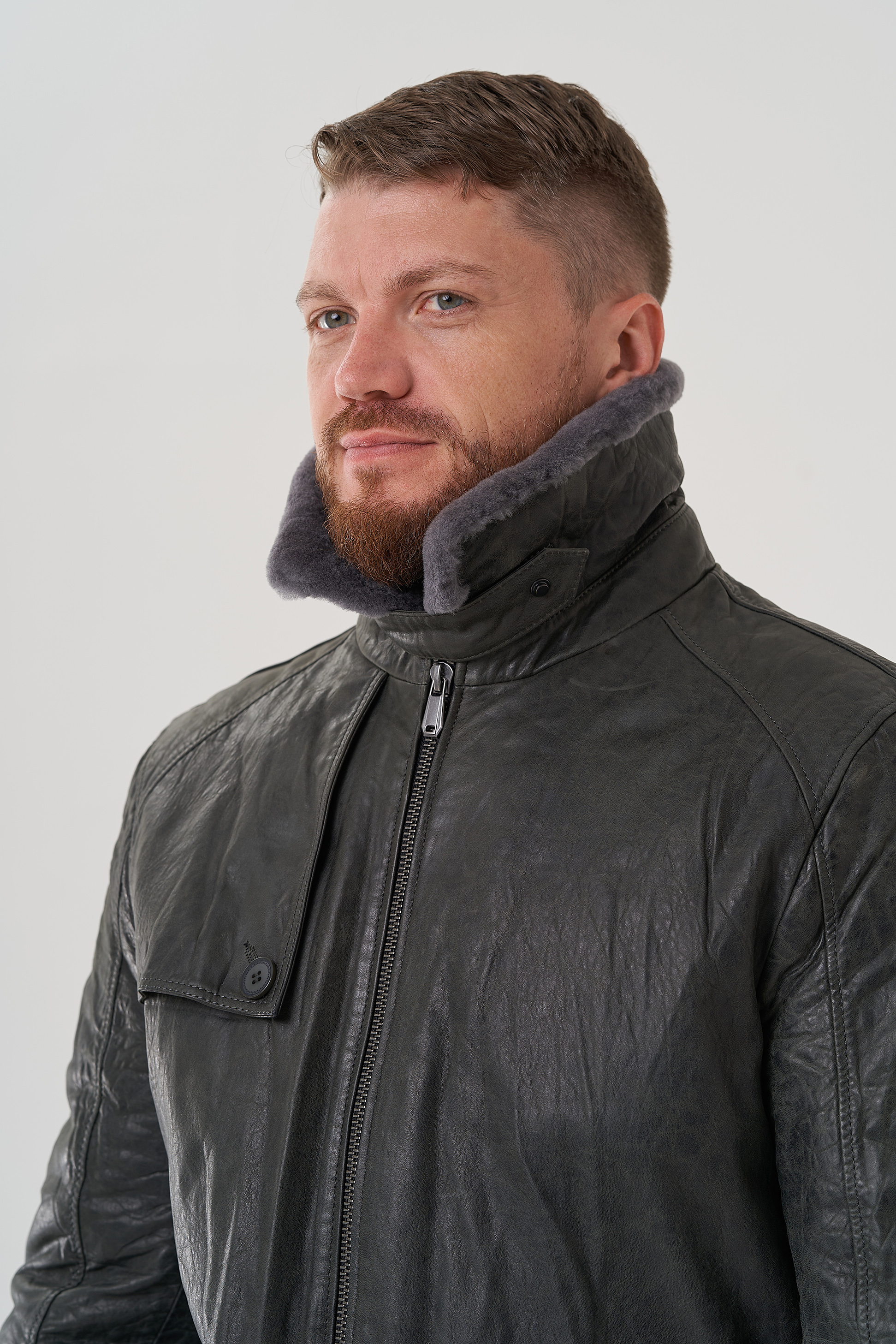 Тип ворота - отложной, отделка мутон серый