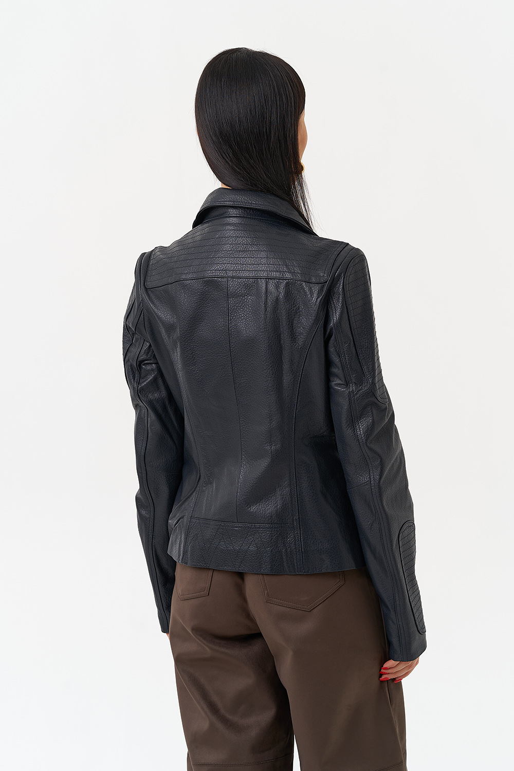 Длина изделия - 60 см;Длина рукава - полный;Цвет -синий;Материал - натуральная кожа;Фасон - приталенный;Вид застежки - молния;Вид ворота - стойка