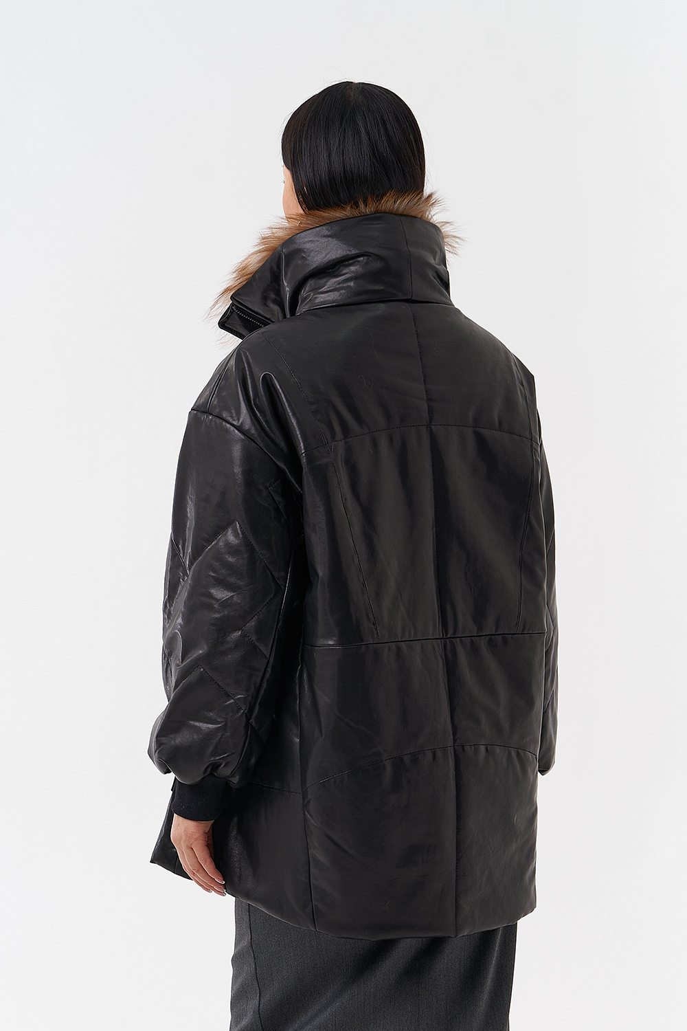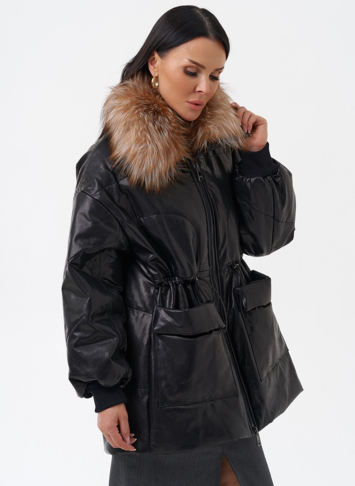 Утепленная кожаная куртка с песцом