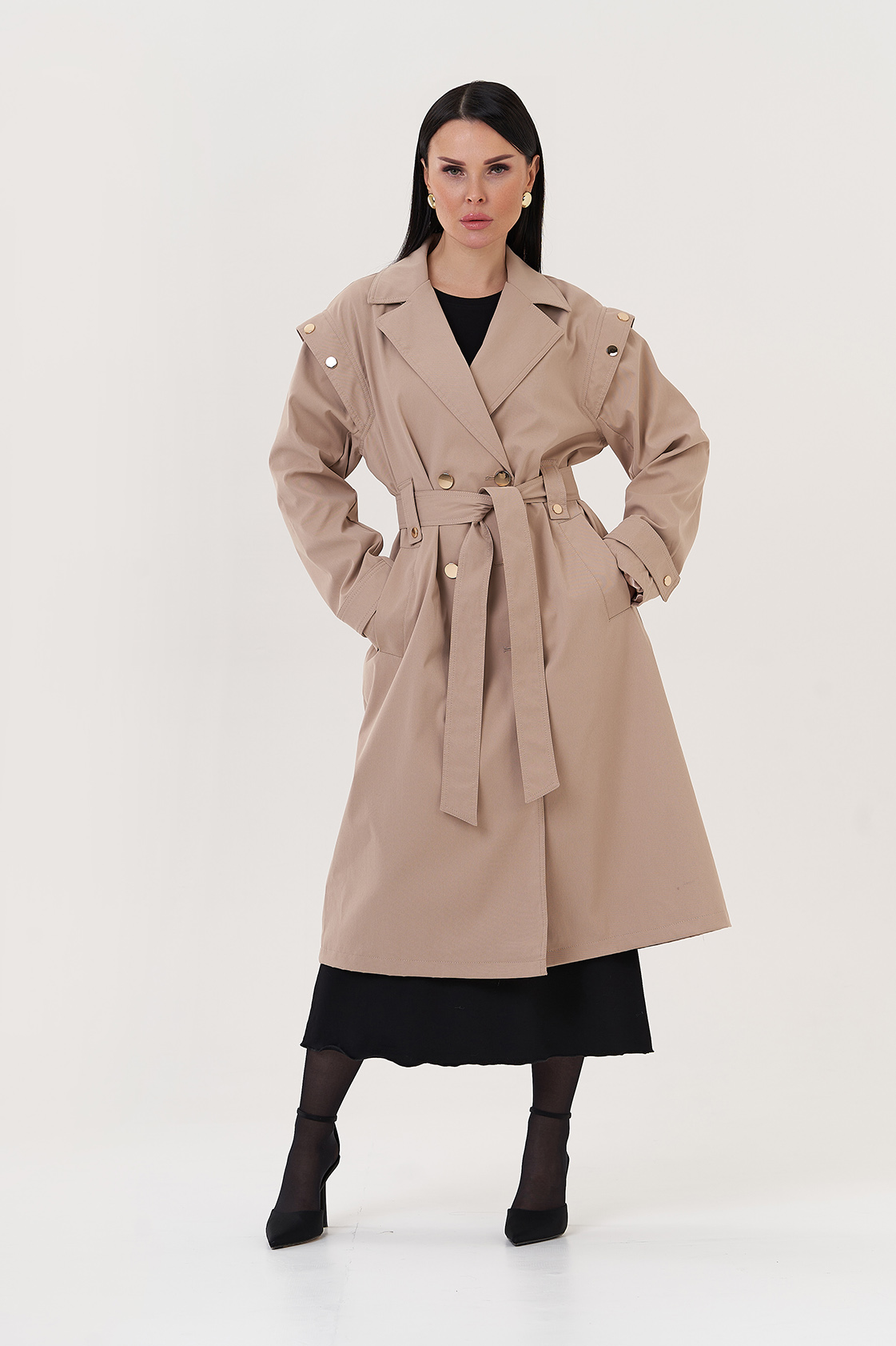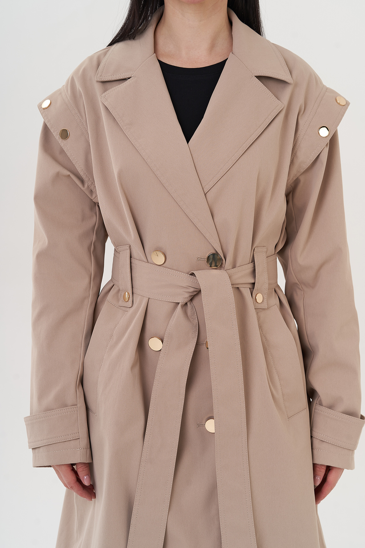 Вид застежки - кнопки, пояс